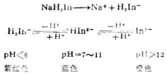 常见的金属指示剂有铬黑T(EBT)、钙试剂等。现以铬黑T为例进行介绍。铬黑T(用NaH2In表示)是一个具有弱酸性酚羟基的有色配合剂,在不同的酸度下为不同的颜色。