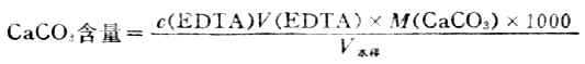 取水样50ml,加入5mlPH=10的NH+-NH3·H2O 缓冲溶液,再加铬黑T指示剂数滴,用0.01ml mol·L-1的EDTA标准溶液滴定至溶液呈蓝色。按下式计算出每升水中CaCO3的含量作为总硬度(单位mg·L-1)。