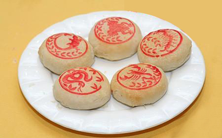 在饼上缀五毒图案,均含驱除之意。五毒饼,即以五种毒虫花纹为饰的饼。五毒饼刻有蝎子、蛤蟆、蜘蛛、蜈蚣、蛇“五毒”形象,吃五毒饼是把“五毒”吃掉,使它们不能毒人。