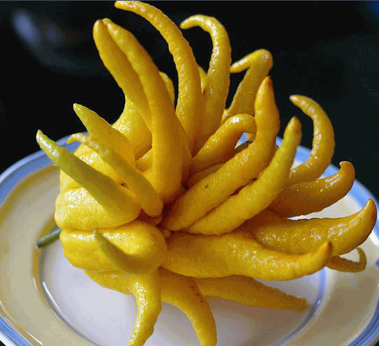 佛手,果实在成熟时各心皮分离,形成细长弯曲的果瓣,状如手指,故名佛手。通常用作中药,或因其果形奇特,而作为观赏植物。佛手柑被大量制作成凉果食用及出售。