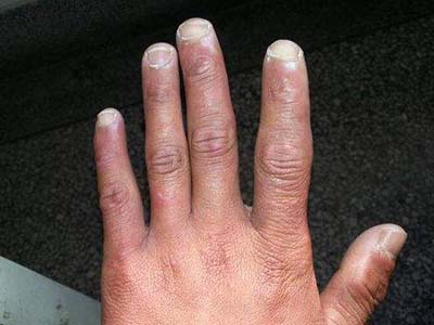冻疮是冬季常见的一种皮肤疾病,它是由于气候寒冷、环境潮湿等因素引起局部皮肤产生的一种异常炎症反应,好发于耳部、鼻部、面颊、足跟、手指,症见局部皮肤发凉,出现暗紫红色或紫蓝色斑片,按之柔软。严重时出现水疱,破裂后形成糜烂或溃疡。遇热后自觉痒、灼热感及疼痛。