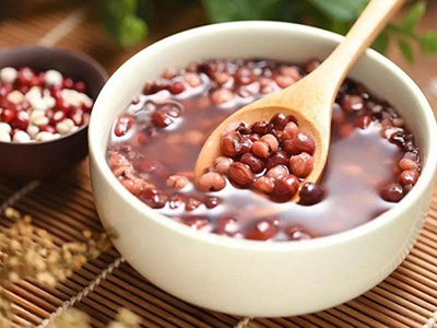做法:因赤小豆、薏米很难煮烂,最好用热水浸泡1小时后再煮。也可将赤小豆、薏米打成粉,取适量热水冲服,更加方便。