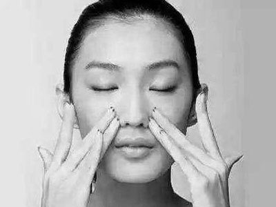 将两手拇指背侧擦热后,同时上下轻擦鼻翼两侧,共36次。然后用拇指关节背侧点揉迎香穴和上迎香36次。