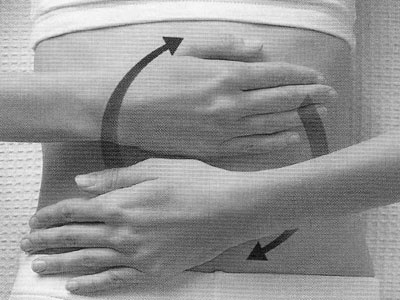 【作用】:此法可改善腹部血液循环,增强消化、泌尿、生殖系统功能,促进消化吸收。可改善腹胀、腹痛、便秘等症。