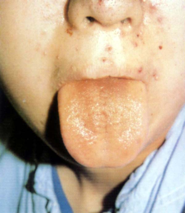 【形象】舌淡白瘦嫩。苔薄老黄,边尖光莹。