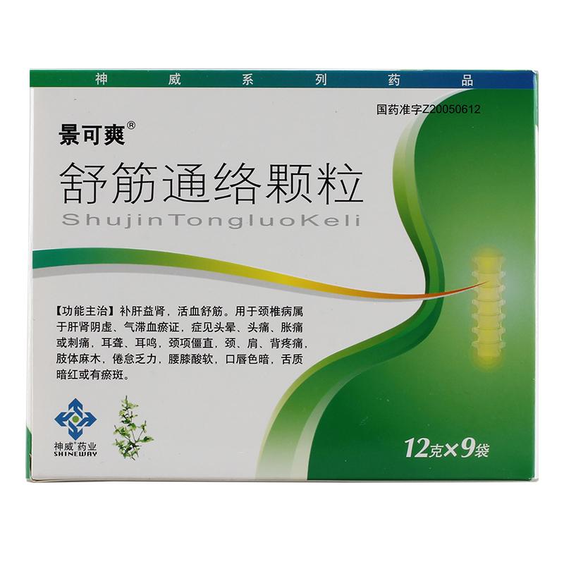 【适应症/功能主治】补肝益肾,活血舒筋。用于颈椎病属于肝肾阴虚、气滞血瘀证,症见头晕、头痛、胀痛或刺痛,耳聋、耳鸣,颈项僵直,颈、肩、背疼痛,肢体麻木,倦怠乏力,腰膝酸软,口唇色暗,舌质暗红或有瘀斑。