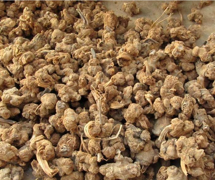 三七根茎(剪口)皂成成分:三七根茎中的皂苷种类和各单体皂苷的比例与主根很相似,总皂苷含量和单体皂苷含量均比主根高。根茎中的总皂苷含量一般在10%左右,Rg1一般可达到4-5%,Rbl一般为3-4%,Rd和Rl得率为1.0%左右。三七根茎是目前加工企业用于提取三七皂苷的主要原料。