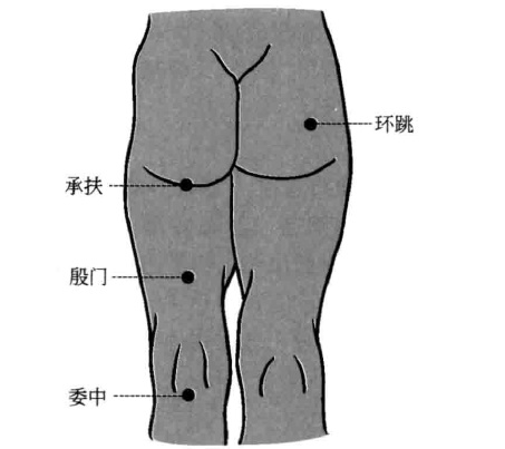 贴敷部位:大肠俞、环跳、阳陵泉、委中、绝骨。
