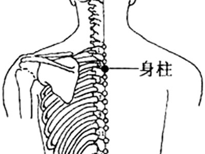 身柱:位于第3胸椎棘突下凹陷中。大椎穴(位于第7颈椎棘突下凹陷中,即正坐低头时颈椎突起最高点下凹陷处)下连续数第三个椎体下凹陷即是,有通阳理气、祛风退热、清心宁神、降逆止咳的功效,对小儿有强身保健作用;适用于小孩体质虚弱、易外感咳嗽及久病不愈者。