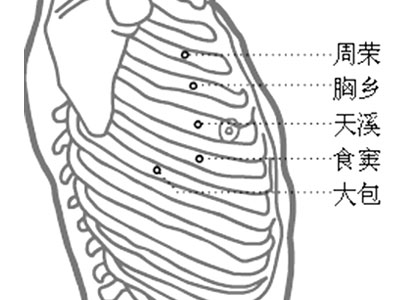 食窦:位于人体的胸外侧部,当第5肋间隙,距前正中线6寸处。《扁鹊心书》认为,食窦穴属脾,能“接脾脏真气,治三十六种脾病。凡诸病困重,尚有一毫真气,灸此穴二三百壮,能保固不死。一切大病属脾者并皆治之。盖脾为五脏之母,后天之本,属土,生长万物者也。若脾气在,虽病甚不至死,此法试之极验”。