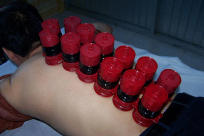 颈背部位:患者端坐,术著在其背後,左右两手各拿好一排已点燃的艾条,从颈部两侧风池穴开始,沿颈而下,至大椎,再从大椎穴处向两侧肩部慢慢散开,直到两侧肩峰为止。接着艾条又重新合拢到大椎穴上,顺着脊背,沿着华陀夹脊从上到下,一直到达骶椎,在整个颈背部施灸时间一般在5min左右,根据病情需要和患者的忍受耐力情况而定。施灸时,患者会明显地感受到多条艾条同时点燃时产生的强大热量对皮肤的强烈刺激,患者的反应是脊背温热,全身出汗,非常舒服。
