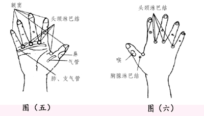 有效反射区:肺、支气管、鼻、喉、气管、头颈淋巴结、胸腺淋巴结等。