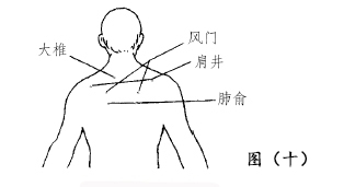 按摩手法:按揉大椎、风门、肩井、肺俞各穴50~100次,力度以酸痛为宜。