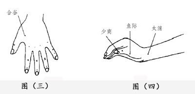 按摩手法 点揉太渊、鱼际、少商、合谷等穴各30~50次,力度适中。