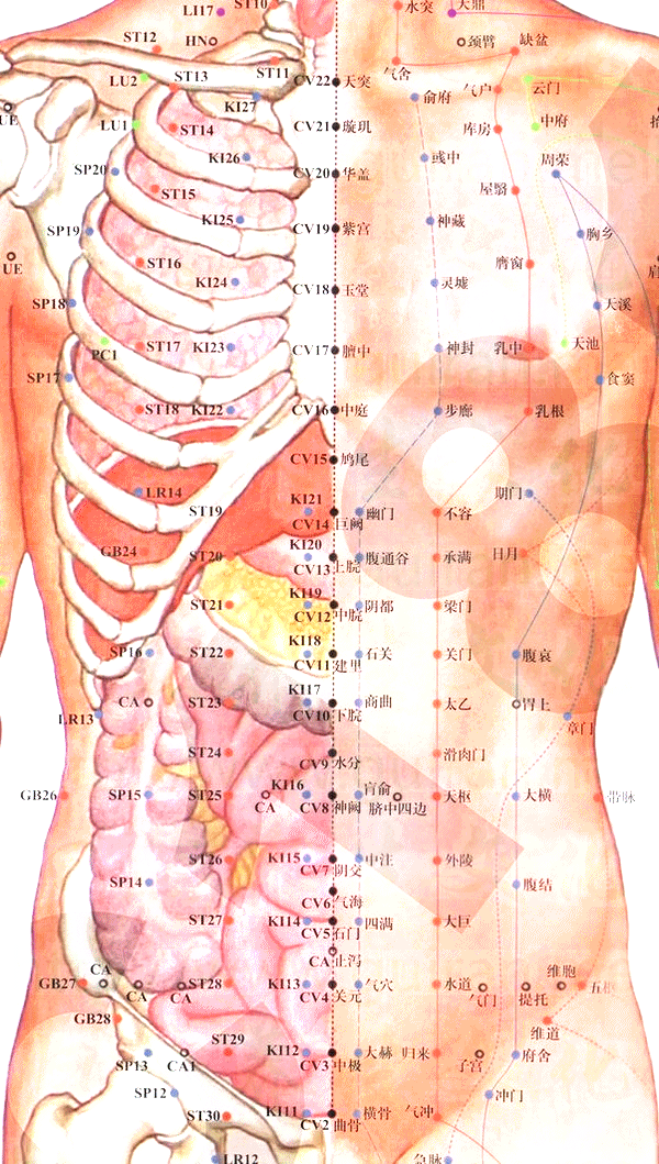 【定位】冲门穴外上方0.7寸,前正中线旁开4寸。
