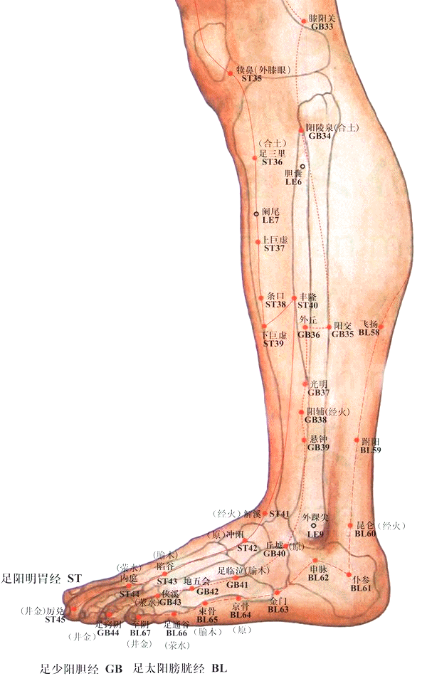 【定位】在小腿后面,外踝后,昆仑穴直上3寸。