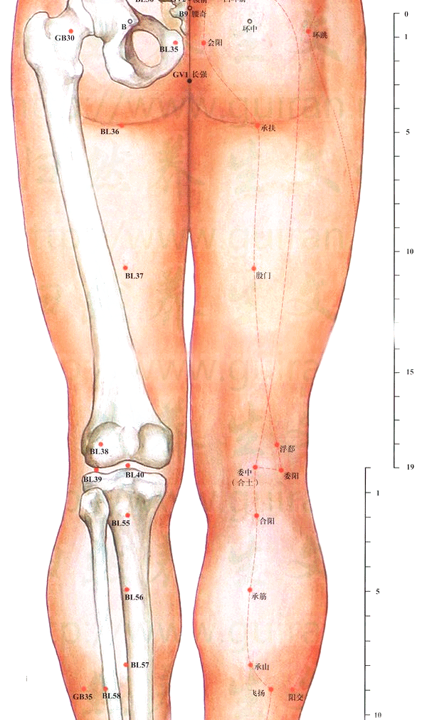 【定位】在腘横纹外侧端,委阳穴上1寸,股二头肌腱的内侧。
