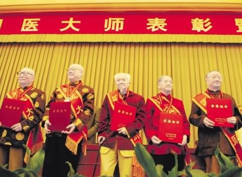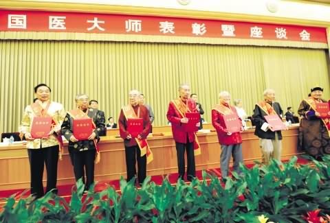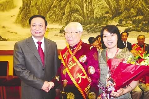 卫生部副部长、国家中医药管理局局长王国强(左)与国医大师李辅仁(中)