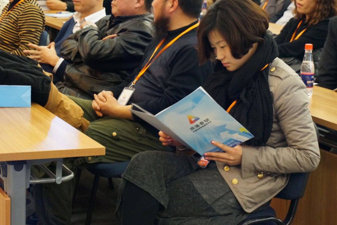 (与会嘉宾认真阅读网海云销平台资料)