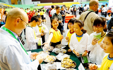 中药材展示和标本制作区是最受欢迎的展台之一。“我妈妈睡不好,我要做一个薰衣草的香囊给她。”共有千余名中小学生参加活动,香囊不一会儿就被一“抢”而空。