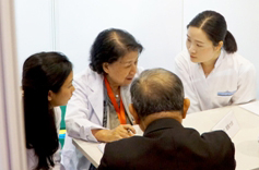 刘敏如(左二)和澳门青年医生一起为市民提供健康咨询