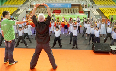“同学们听说过易筋经吗?”“听说过,是武功?”“今天介绍的易筋经和武侠小说里的不一样哦。”10月29日上午,活动现场迎来了一批又一批来自澳门本地中小学校的同学们。他们在主持人的解说下,有模有样地跟着严蔚冰做起了易筋经导引的基础动作。