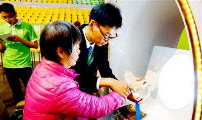 由福建中医药大学研制的中医健康管理太空舱前也排起了长队。