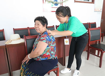 (三下乡队员为老人按摩通讯员 李璐瑶 摄)