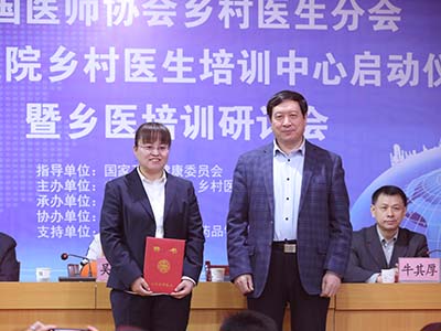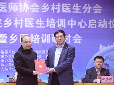 启动仪式上,中国医师协会乡村医生分会向“培训中心主任”郝华明颁发聘书。