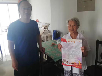 为迎接中国人民解放军建军92周年,2019年8月1日当天,望都县中医院党支部书记王晓青带领党办室相关人员到我院退役军人家中及工作岗位进行走访慰问。每到一处,王晓青书记都为他们送上节日的祝福和慰问信,详细地了解他们的身体状况、生活、家庭、工作及存在的困难等情况。