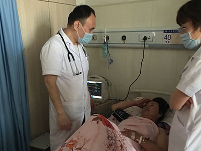 经值班医生和专家组会诊,发现患者已神志恍惚、不能言语、右侧肢体运动障碍,已不能自主活动,右侧肢体肌力0级,NIHSS评分16分。内九科立即开通急性脑梗死静脉溶栓治疗急诊绿色通道,为闫女士做心电图、化验等项目检查。该院溶栓小组专家成员放弃吃晚饭、立即到达救治现场。专家组根据检查结果,确诊患者为急性脑梗死。综合各种情况,溶栓小组组长冀同振决定对闫女士实施静脉溶栓治疗,帮助其尽快恢复健康。