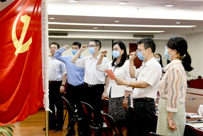 为庆祝中国共产党99周年华诞,7月1日上午,国家中医药管理局国际合作司党支部在局机关举办“战疫党旗红 奉献当先锋——纪念建党99周年‘向党说句心里话’主题党日活动”并重温入党誓词,全体党员同志在鲜红的党旗下,高举右拳,庄严宣誓。国家卫生健康委党组成员、国家中医药管理局党组书记余艳红,国家中医药管理局党组成员、副局长孙达以普通党员身份参加活动并分享体会。