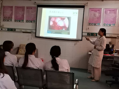 上午10点,在中医院孕妇学校,闫丽婷以《阴道镜诊疗操作及临床应用》为题,围绕宫颈组织解剖学、检查指征、诊断标准等16项内容,结合自己17年的妇科疾病诊治体会,向中医院妇产科人员讲解了阴道镜诊疗正确操作技术及临床应用规范。就进一步提高妇科检查器械使用率和检查精准度,同大家进行了互动交流。