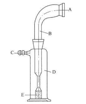 A.橡膠接口;B.模擬喉管;C.出口;D.160ml玻璃容器;E.孔隙爲100~160μm燒結玻璃