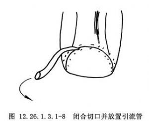 伤口内放置引流管,间断全层缝合关闭皮肤切口(图12.26.1.3.1-8)。